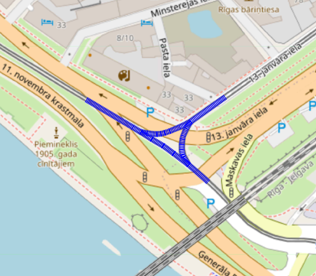 Jau februāra beigās “Rīgas satiksme” uzsāks būvniecības darbus 11. novembra krastmalas un 13. janvāra ielas krustojumā. Būvprojekts paredz 11. novembra krastmalas un 13. janvāra ielas krustojumā esošo tramvaja infrastruktūras, t.i. sliežu ceļu, kā arī tramvaja kontakttīkla pārbūvi. Būvdarbu zonā ir sešu sliežu ceļu krustojums ar sešām pārmijām, kur visas tiks nomainītas pret automātiskajām.