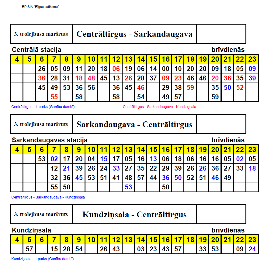 Pagaidu kustības sarakstu 3. trolejbusa maršrutam varat apskatīt, spiežot zemāk: